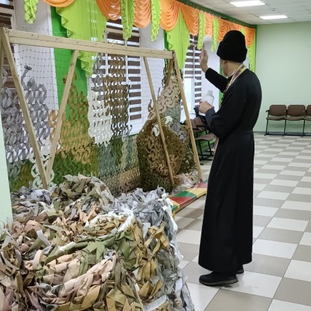 У ветеранской организации д. Слобода произошло важное и трогательное событие. Их маскировочные сети перед отправкой были освящены иереем Андреем Сауткиным.