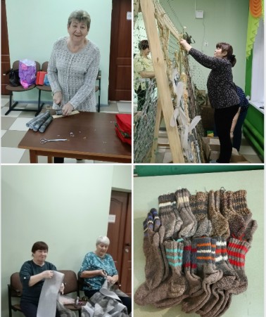 С начала СВО жители округа активно помогают военнослужащим. Собирают продукты, теплые вещи, предметы первой необходимости, вяжут носки.
