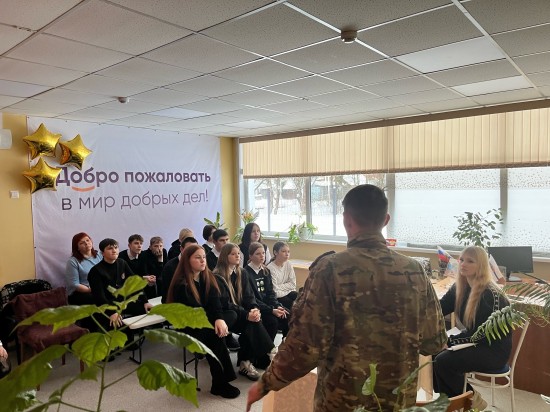 В Доброцентре для учащихся 8 «А» класса МБОУ «Вохтожская школа» прошла важная и вдохновляющая встреча с участником боевых действий в зоне СВО — Романом М.